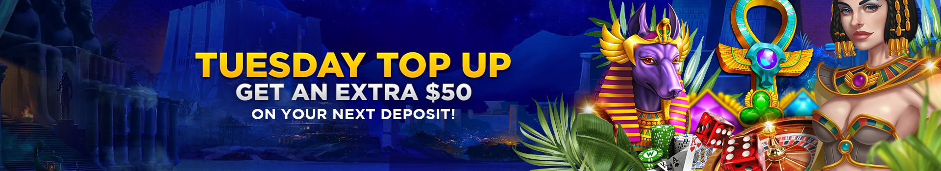 Beef up your deposits every week with the $50 Tuesday Top Up reload at Wild Casino! Just use
