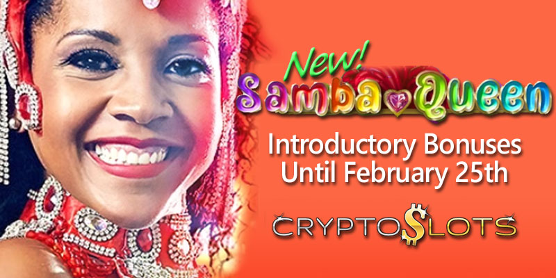 just unveiled its exotic new Samba Queen slot game with Double Wilds and a free spins bonus feature. The crypto-only online casino is offering bonuses and top-ups until February 25th for players to try the colorful new game.