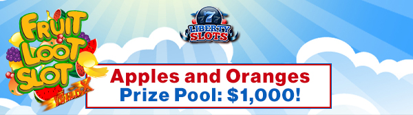 The Apples and Oranges tournament gets underway February 17th at Liberty Slots Casino. This event features the popular Fruit Loot. Win the big first prize, $500!