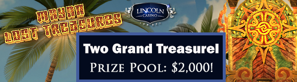 A whopping $2,000 in prizes are up for grabs in the Two Grand Treasure tournament at Lincoln Casino! Play the five reel slot Mayan Lost Treasures in this event. Win the huge $1,000 first prize! The Two Grand Treasure runs until March 5th.
