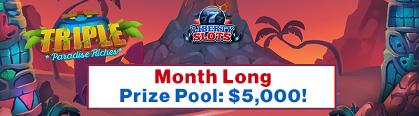 The fantastic Month Long tournament kicks off March 1st and runs throughout the entire month at Liberty Slots Casino! The prize pool is a colossal $5,000! Play Triple Paradise Riches in this event. Win the huge $1,500 first prize!
