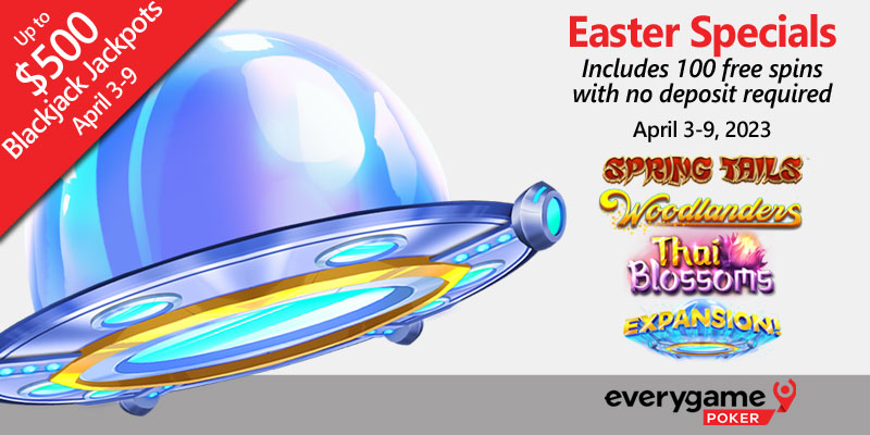 This week Everygame Poker is giving depositing players free spins on four popular slots from Betsoft. Those that claim three free spins deposit bonuses can then claim 100 free spins on the new Expansion with no further