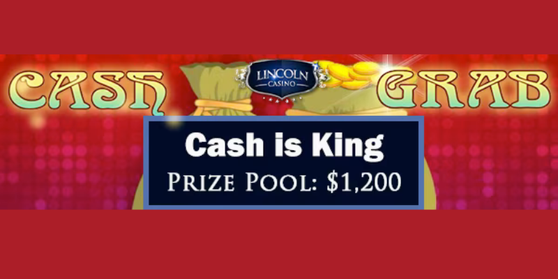 Win your portion of $1,200 in prizes at Lincoln Casino! The Cash is King tournament gets underway April 20th. Play the three reel slot Cash Grab in this event. Play in the Cash is King tournament and win the $600 first prize!