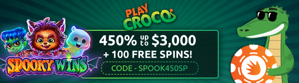 Have a splendid week at PlayCroco Casino with 450% up to $3,000 plus 100 spins to play the new pokie Spooky Wins. You also get 25 free spins on Spooky Wins! Spooky Wins launches