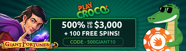 It's another massive week at PlayCroco Casino. And this week you collect a massive 500% up to $3,000 plus 100 Spins. You also collect 30 free spins on Giant Fortunes!