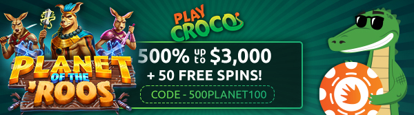 Enjoy our newest pokie Planet of the Roos from January 31st at PlayCrocco Casino. Get a whopping 500% up to $3,000 plus 100 spins to play Planet of the Roos.