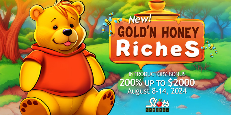 generous 200% deposit bonus up to $2000 on the new Arrow’s Edge slot Gold’n Honey Riches from August 8-14.