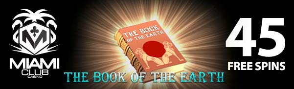 Enjoy 45 Free Spins on ‘Book of the Earth’ at Miami Club Casino! Code: BEM1211 / No Deposit / WGR: 40x / Max. Cashout $150 / Dec 11