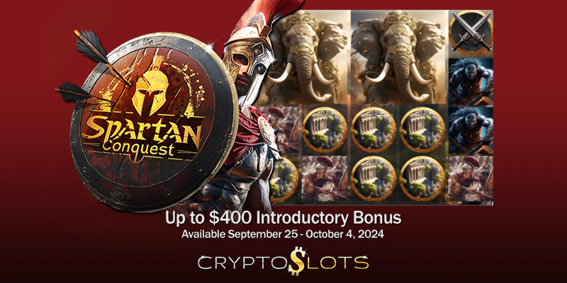 Conquest, inspired by the heroic Spartan warriors of Ancient Greece. This cutting-edge Mega Matrix 5x4 video slot with 28 paylines is the first on CryptoSlots to introduce Colossal Symbols. Players can take advantage of enticing deposit bonuses until October 4.