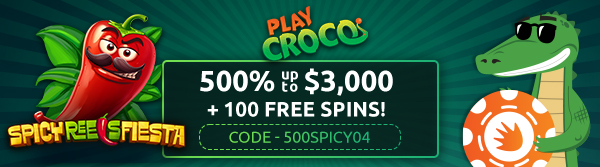 Our new pokie Spicy Reels Fiesta launches April 23rd at PlayCroco Casino! And you receive a giant 500% up to $3,000 plus 100 spins to play Spicy Reels Fiesta.