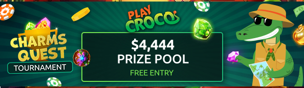 PlayCroco's Charms Quest tournament gets underway May 1st. $4,444 is the prize pool! This event features the pokie Charms of the Forest.