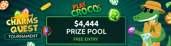 PlayCroco's Charms Quest tournament gets underway May 1st. $4,444 is the prize pool! This event features the pokie Charms of the Forest. Enter free and get 100