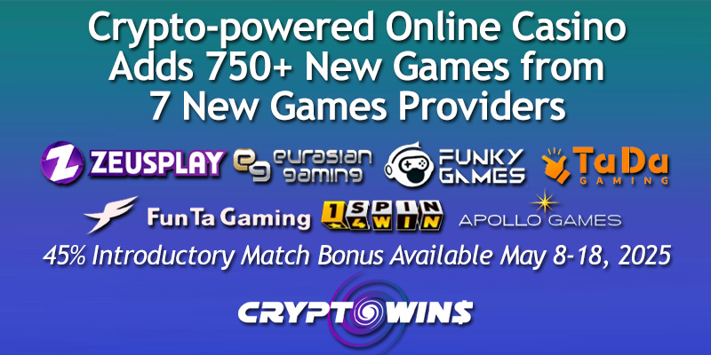 is making a power move this May. CryptoWins officially launches 750+ brand-new games from seven bold new providers, boosting its total game library to a whopping 1,200+ titles â and