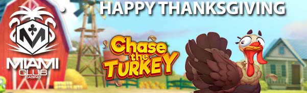 Give thanks, spin big, and chase down festive wins! This holiday season, Miami Club is serving up a delicious treat for all players — 50 Free Spins on Chase the Turkey at Miami Club Casino!